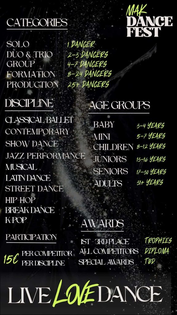 Во Денс Студио МАК создаваме инспиративна средина каде што децата, младите и возрасните растат низ современ танц, техника и сценско изразување – чекор по чекор, со љубов и професионален пристап.